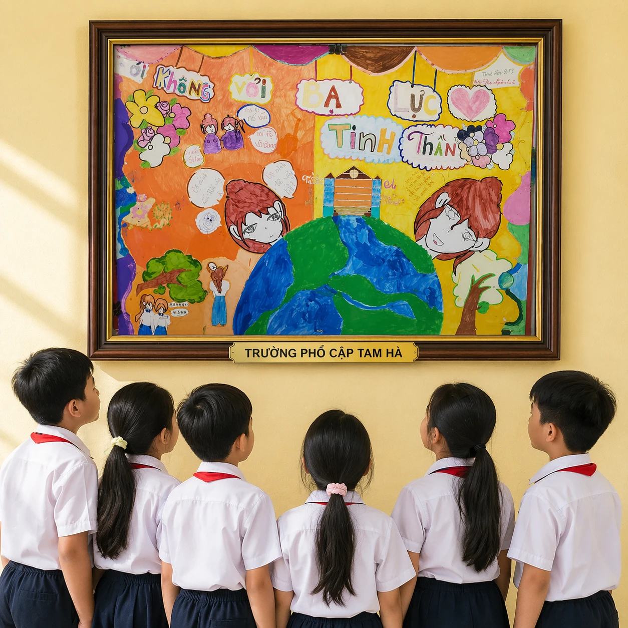 Tranh vẽ là của các em học sinh trường Phổ cập Tam Hà